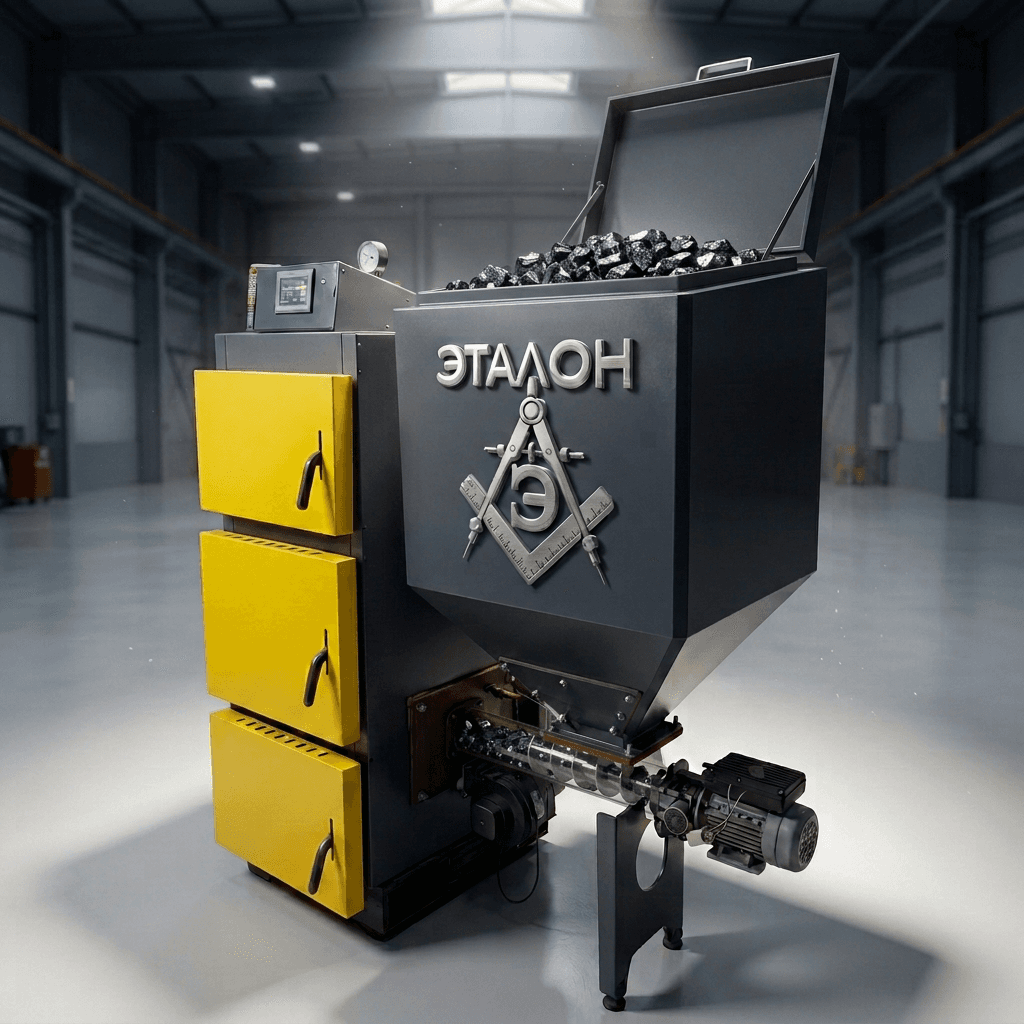 Автоматический твердотопливный котел «ЭТАЛОН-15» способен отапливать дом площадью до 150 м². Его максимальная мощность составляет 15 кВт. Устройство оснащено вместительным бункером, шнековой подачей топлива и интеллектуальным контроллером с инновационным погодозависимым алгоритмом. Бункер позволяет котлу работать автономно до 10 дней без дозагрузки. Автоматическая подача топлива и вентилятор обеспечивают экологичность. Увеличенный теплообменник повышает эффективность до 90%, что снижает расходы на топливо.